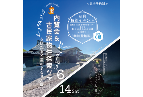 終了しました 【第37回】6/14日(土)内覧会・古民家物件探索ツアー・ほたると星のよるさんぽ開催2025.06.14(土) 13:30~ 奈良県御杖村