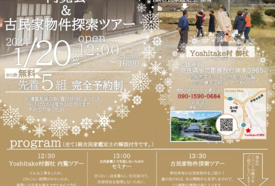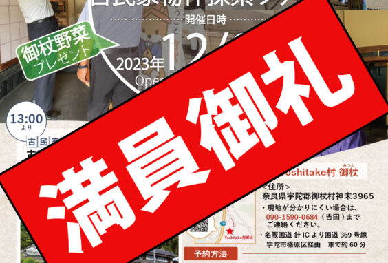 こんにちは!営業部 山本です!タイトルの通り、12月3日㈰『Yoshitake村御杖 内覧会&古民家物件探索ツアー』ご予約多数頂き、満員御礼で期日より早めにご予約締切らせて頂きました!前回の11月11日の同イベントも満員御礼で、期日前に締切る事態となり、今回も同じく満員御礼で本当に嬉しく思います。古民家に興味のある方、田舎暮らしに興味のある方は、たくさんいらっしゃいます。少しでも、理想と現実のギャップを埋め、より良い古民家・田舎暮らしができるようお手伝いができればと思います。次回は、1月20日㈯に開催予定です!御杖村は積雪地域ですので、当日の雪の加減で中止になる可能性がございますが、Yoshitake村御杖自慢の薪ストーブを全開で焚いてお待ちしております!また、イベント内容詳しく決まり次第、イベントページに詳細を載せますので、お楽しみに!