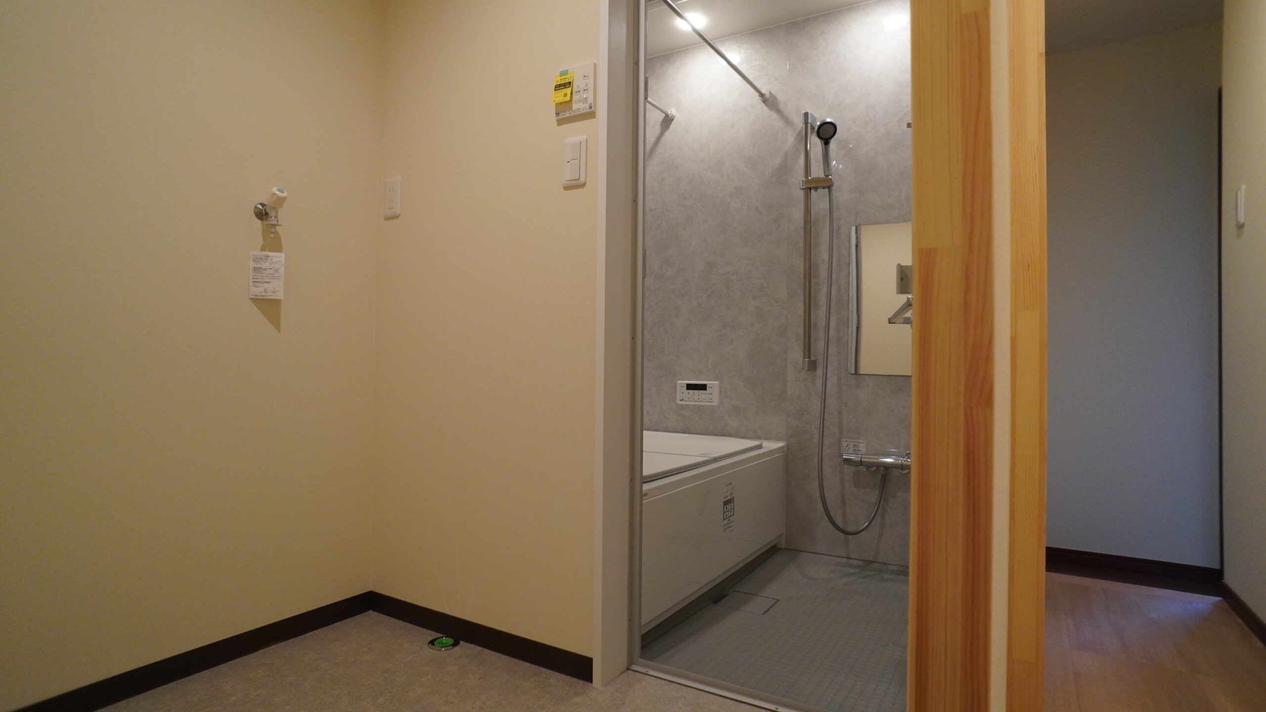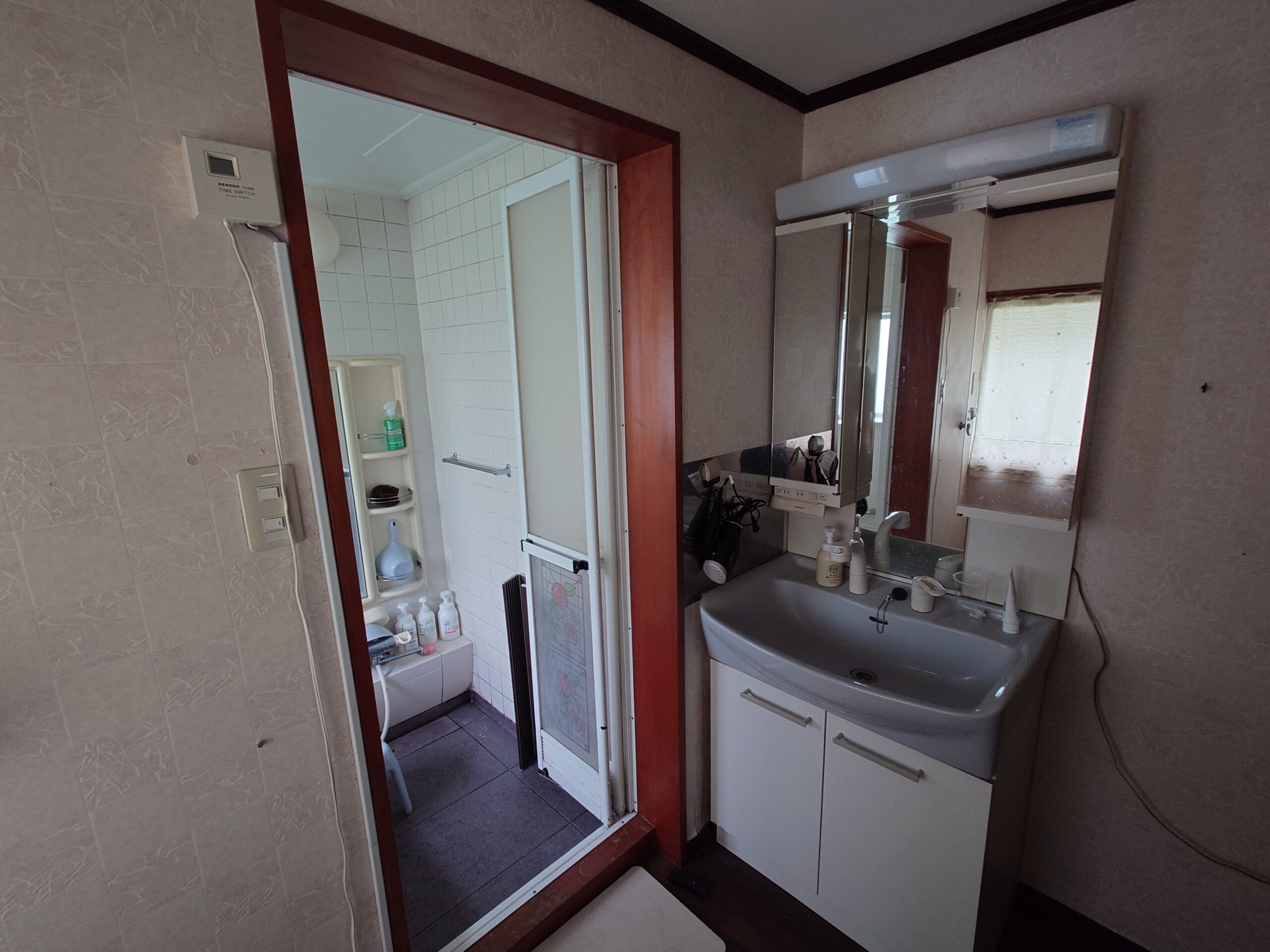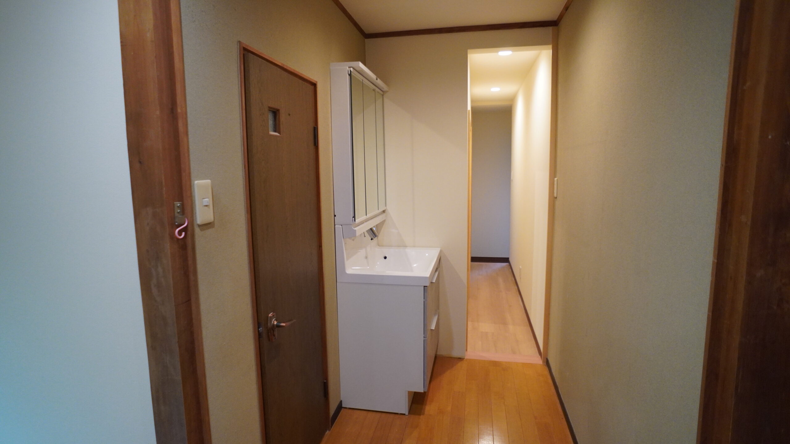 脱衣所の入り口を変え、洗面台の位置も変わりました。