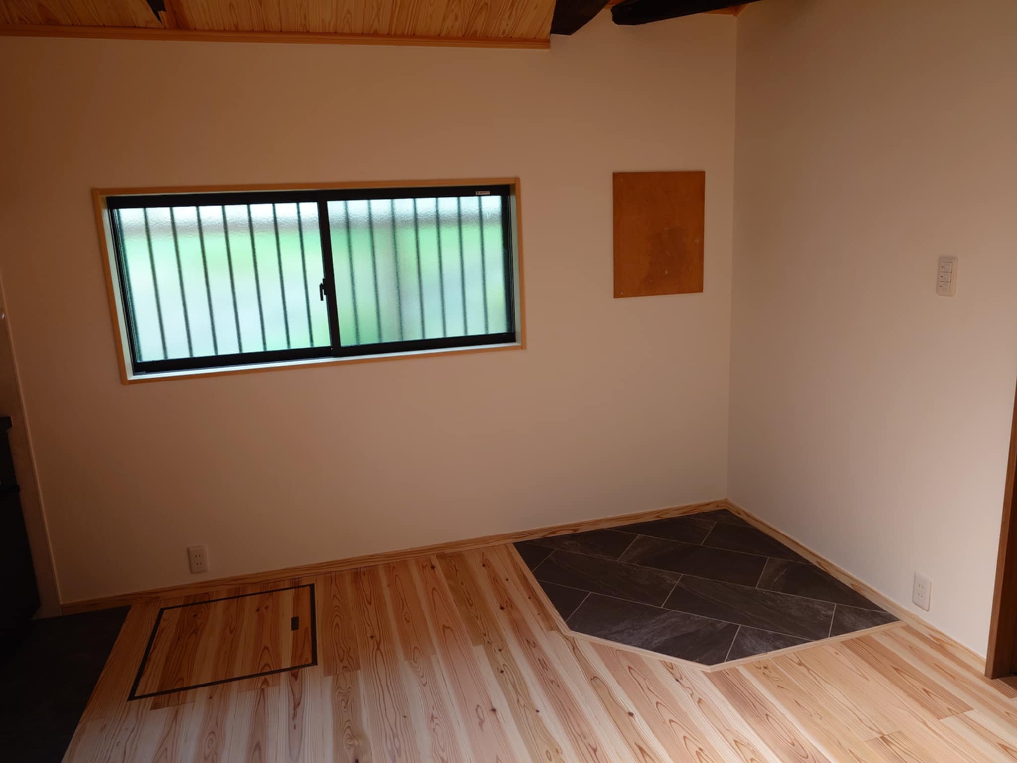 暗い床の部分に薪ストーブを設置予定です。