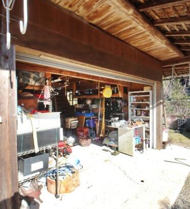 シャッター付きで畑道具も車の備品もたっぷり収納できます