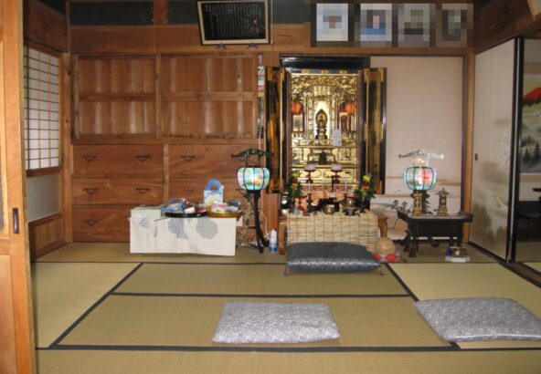 四方を田と林と川に囲まれた自然豊かな空間に黒塗りの重厚な佇まいを見せる古民家住宅です。所有者様が20年前に先代より引き継がれて以降、放置することなく丁寧に維持管理されてきた物件につき、建物内においても換気、清掃が行き届いております。建物は村道三峰線より田を挟んだ奥に位置しており、車の走行音も気にならず、裏手の名張川のせせらぎが心地よく感じられる立地となっております。